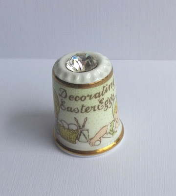 En este precioso dedal se aprecia la decoración de huevos de pascua,tiene un cristal en la parte superior que le da un encanto especial...lo tengo gracias al intercambio que realicé con Marta Skwara, una amiga polaca. Estoy feliz y encantada con esta belleza!